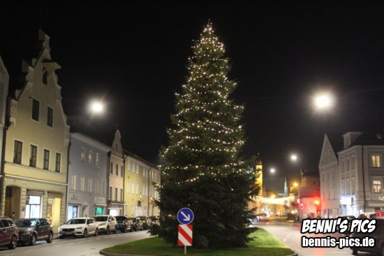 Der Weihnachtsbaum beleuchtet am Bismarckplatz @ Landshut (27.11.2019)